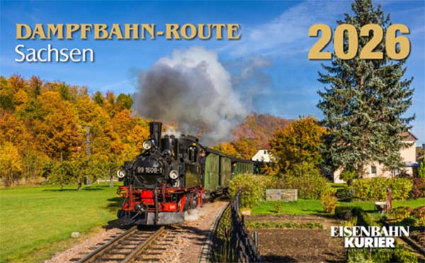 Dampfbahn-Route Sachsen 2026 Willkommen in Sachsen: Für jeden Kalendermonat präsentieren wir zwei faszinierende Eisenbahnmotive aus dem südöstlichen Bundesland, wo sich die Betreiber und Bewahrer historischer Eisenbahnen und Dampftechnik zur „Dampfbahn-Route“ zusammengeschlossen haben. 25 farbige Kalenderblätter auf Kunstdruckpapier,