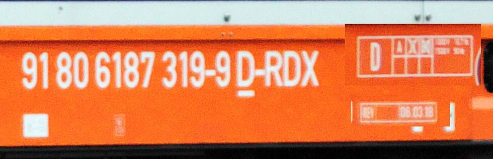 16.08.2022 Daten 187 319.. 91 80 6 187 319-9 D-RDX UIC: DE-AT(-HU-RO) REV 08.03.18(aufgenoimmen am 22.07.22) ... |