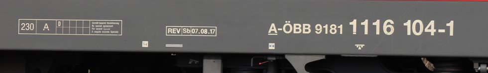 25.01.2022 Daten 1116 104.. A-ÖBB 9181 1116 104-1 REV Sb 07.08.17UIC: DE-AT (aufgenommen am 14.03.2018) ... |