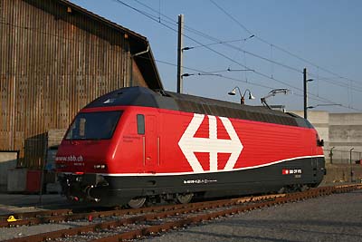 Gesamtansicht der Re 460 018-9 in Yverdon nach abgeschlossener Revision 2