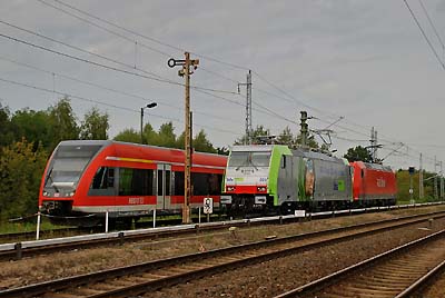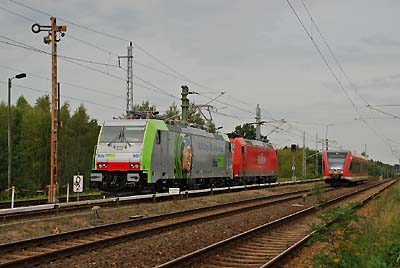 Anbei einige Bilder vom Mittwoch und Donerstag (10/11. September) aus Berlin: Die nagelneue BLS 486 501 machte erste Testfahrten. Die Aufnahmen zeigen 185 181 + 486 501 zwischen Hennigsdorf und Velten sowie 485 501 zwischen Hennigsdorf und Velten. Man beachte, dass die Lok zwei verschiedene Seitenschriften hat, einmal italienisch, einmal deutsch. ![]() ![]() ![]() ![]() ![]() ![]() ![]() ![]() ![]() ![]() ![]() ![]() ![]() ![]() Text und Bilder: Sebastian Schrader |