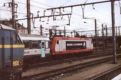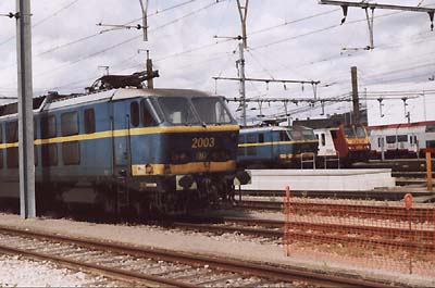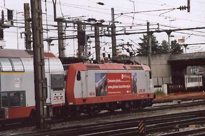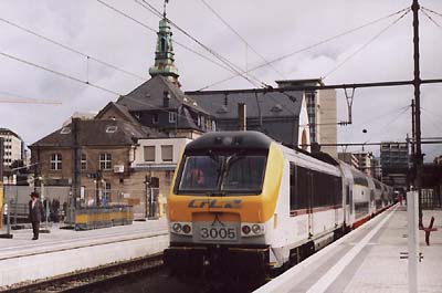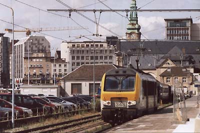 Die SNCB 2003 steht als Stilllager im Gleichstromgleis neben dem großen Parkplatz, ihre Schwester 2001 wartet 3 Gleise weiter mit einem Kurswagen auf die Ankunft des EC91 "Vauban" aus Basel, und der CFL 2006 fährt als Regionalzug gerade aus dem Bahnhof.