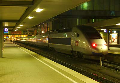 Vor der Abfahrt in München noch gesichtet: der bereitgestellte TGV 9576 und mit dem ICE 616 (403 503) ging´s pünktlich um 03:17 Uhr los.