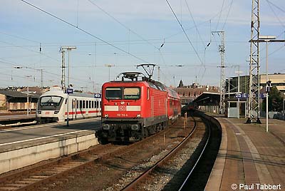 112 114 mit dem Ersatzzug nach Sternfeld bei der Ausfahrt aus dem Hbf,