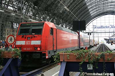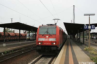 Ich war ein wenig enttäuscht von den wenigen Güterzügen, deshalb beschloss ich, die restlichen zwei Stunden Regiogerümpel im Frankfurter Hbf zu fotografieren - dort gab es wenigstens mehr Auswahl. Den RE zum Hbf bespannte 146 243, einmal in Frankfurt (M) Ost...