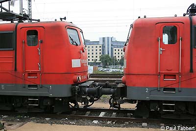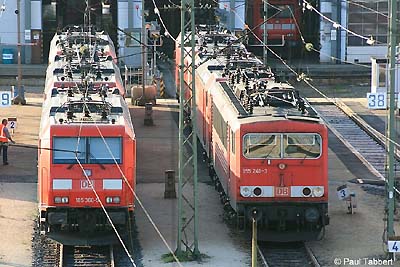 ...oder 143 197, die im Gleisvorfeld abgestellt war (rechts im Hintergrund ist auch die grüne 141 068 zu erkennen!)