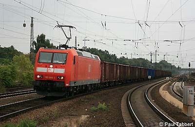 Endlich wieder Mal ein Güterzug: Polenkohle in E-Wagen, gezogen von 185 059.