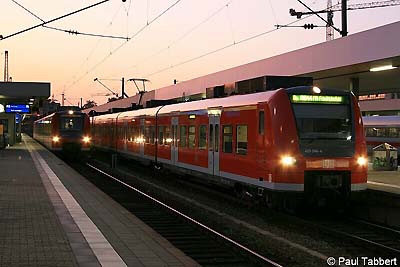 Ein paar Dämmerungsbilder im Hbf waren noch drin, ich hatte vorsorglich das Stativ mitgenommen. Leider sind die 143-Einsätz dort anscheinend Geschichte, es fuhren fast nur Plastikeimer von 425 umher. Hier 425 266 als RB44 nach Friedrichsfeld.
