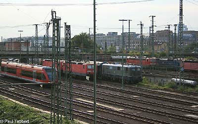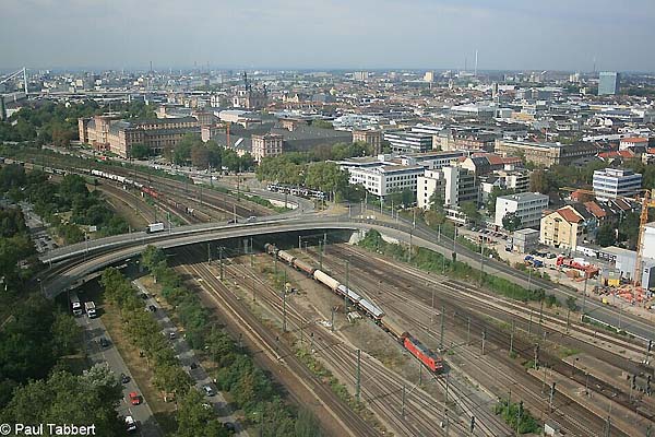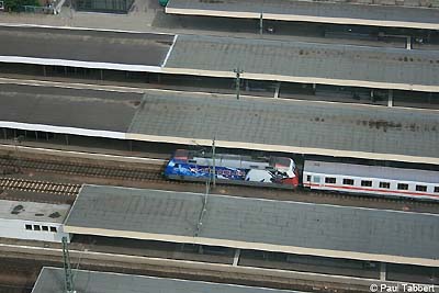 Während einer Pause bei dem Einstellungstest kam mir mit die Möglichkeit, 101 070 "Die Adler Mannheim" in Mannheim zu fotografieren, und das aus dieser hammergeilen Modellbahnperspektive, 23. Etage!!!
