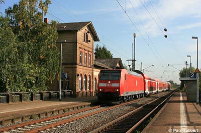 Ein RE nach Frankfurt am Main mit 146 117 rauschte vorbei.