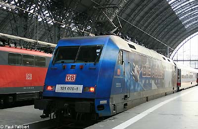 In Frankfurt am Main Hbf angekommen, traf ich dort noch mal 101 070 (links mein Zug mit 111 097).