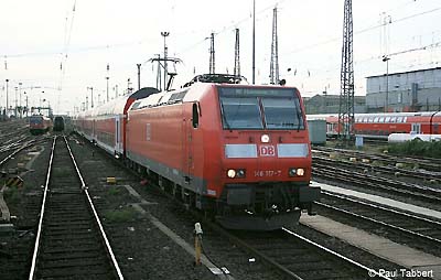 ...geschoben von 146 242. Ich weiß gar nicht warum alle so schlecht über diese Wagen reden, ich bin von Hanau nach Frankfurt (M) Ost das erste Mal mit solchen Wagen gefahren - mir haben sie gefallen. Viel besser als rumpelige n-Wagen!