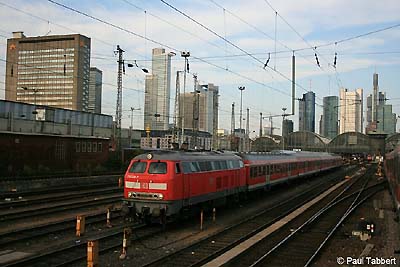 Zum Abschluss des Tages die Aufnahme von 218 128 - vor der Skyline Mainhattens.