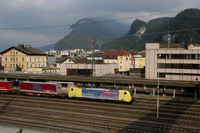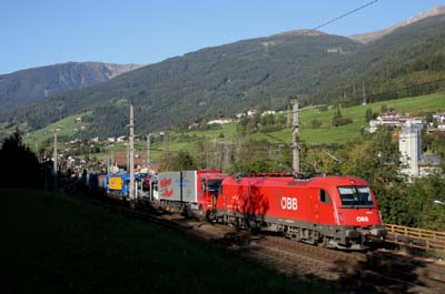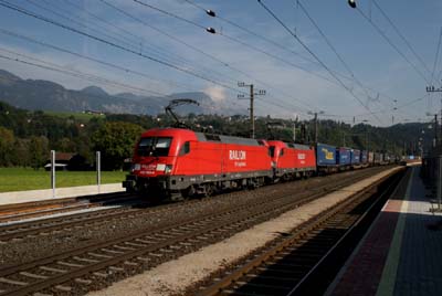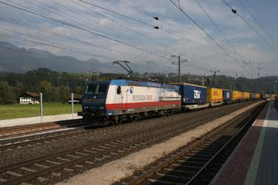 Noch sind die BR 182 in Österreich unterwegs. 182 003 + 182 020 sind mit einem Containerzug zum Brenner unterwegs. Eine dritte 182 schiebt den Zug nach.