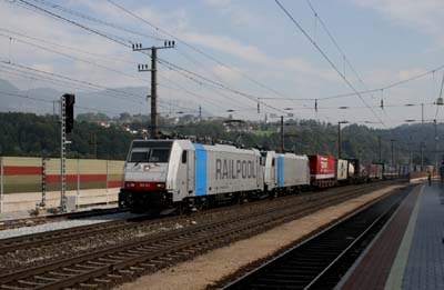 Ein flotter Railpool/RTC Dreier mit 186 101 3 +186 105 + 186 106 führend ist ebenfalls auf dem Rückweg nach Innsbruck