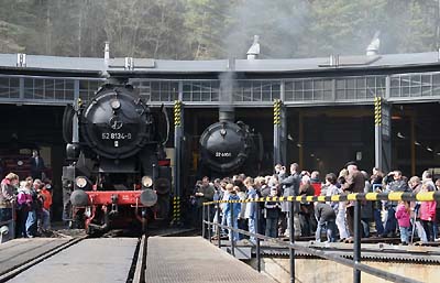 Im Bw gab es an diesem Nachmittag außer Menschenmassen nichts zusehen. Deshalb auch nur ein Bild von der in dem Ringlokschuppen einrückenden Reko 52.