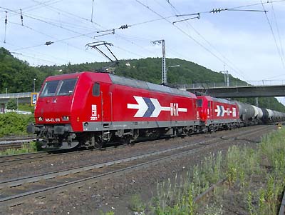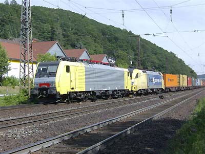 Richtung Frankfurt fuhren die beiden für HGK tätigen 145 CL 011 und 185 588