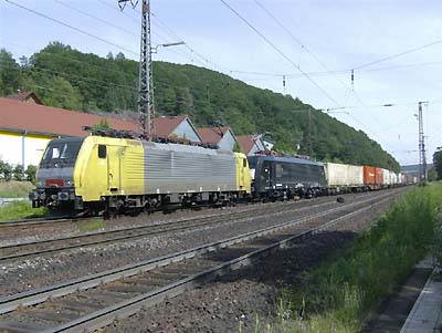 E 189 916 und ES 64 U2 007 mit Containern