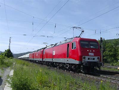 Mittwoch 16.06. nachmittags in Gemünden: Die folgenden Loks fädelten sich mit ihren Zügen von Süden kommend vor dem Bahnhof Gemünden Richtung Nord-Süd-Strecke ein.