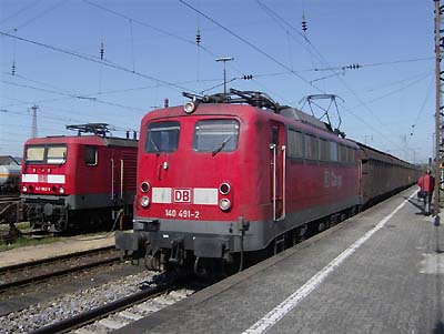 Über die früher so verschmähten und heute gesuchten Einheitselloks der Baureihe 140 freute ich mich, als ein KLV-Zug Richtung Norden mit 140 810 und einer zweiten 140 vorbeifuhren. Leider war der gerade eingenomme Fotostandort nicht optimal