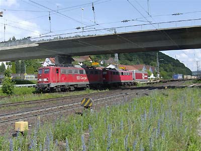 Den 8. Juni nutzte ich urlaubsbedingt zu einer Fahrt in den Spessart - natürlich nicht ohne auch einmal in Laufach vorbeizuschauen in der Hoffnung die 1020.41 der MWB endlich auch mal in Aktion zu erleben. Und ich sollte nicht enttäuscht werden. Es fuhren durch die Bank sehr lange Güterzüge über den Berg und so gut wie alle benötigten Schubhilfe. Die beiden Nürnberger 151 149 und 151 014 waren zeitweise ganz gut ausgelastet. Aber auch die "Privaten" benötigten Schubhilfe.