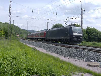 Zwischenzeitlich rauschte wieder einmal 185 556 mit dem RE nach Würzburg an mir vorbei. Das war zwar nicht die einzige 185 die unterwegs war, aber diese drängte sich wohl immer ins Bild :-)