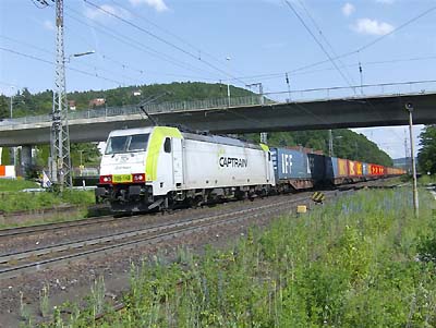 ...die CAPTRAIN 186 148 mit ihren Containern Richtung Norden.