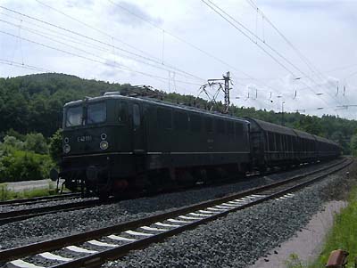 Ebenso E 42 151 mit dem bekanten Henkelzug. Diesen schaffte E 42 151 auch allein.