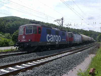 Nachdem alle Bahnhofsgleise nach und nach geräumt wurden folgte es Schlag auf Schlag: Die beiden SBB-Loks 421 388 und 421 373 nahmen mit dem Kesselwagenzug den Berg