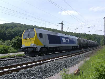 Um die Mittagszeit fuhr die Voith Maxima mit einem Kesselwagenzug über den Berg. Dies schaffte sie mit dem ihr typischen BIO-Diesel-Abgasduft aber allein.