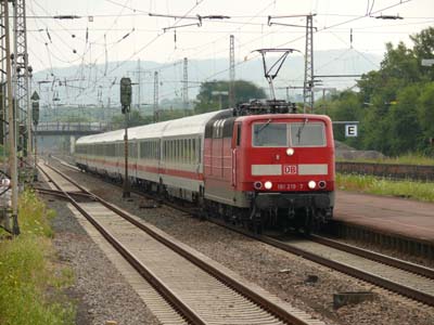 Zuletzt kamen noch die orientrote 181 215 mit dem IC 339 Richtung Koblenz und ....
