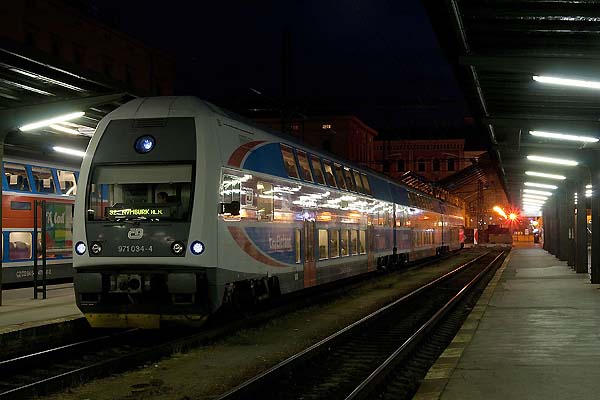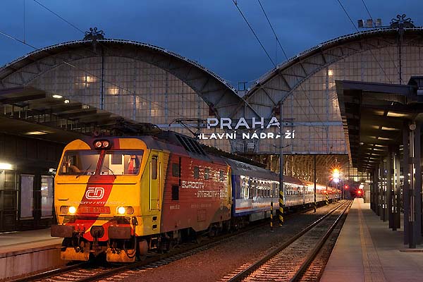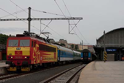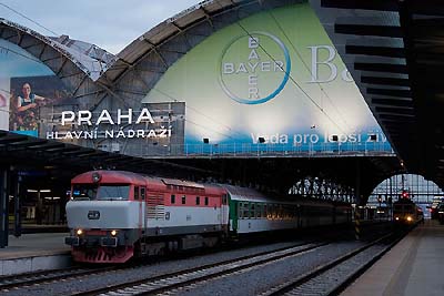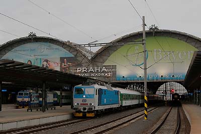 Zu Beginn des gemeinsamen Urlaubs wünschte sich meine bessere Hälfte eine Städtereise weshalb aufgrund eines günstigen Angebotes die tschechische Hauptstadt Prag ausgewählt worden ist. Mir war dieser Umstand durchaus angenehm, hielt ich mich vor rund zehn Jahren das letzte Mal in der goldenen Stadt auf. Obwohl das primäre Ziel beim Aufsuchen diverser Sehenswürdigkeiten lag konnten einige Zeitfenster für das Hobby aufgewendet werden um mich von den bisherigen Änderungen seit meinem letzten Besuch zu überzeugen. Freundlicherweise stellte mir der tschechische Kollege Petr Kadervarek einige Insiderkenntnisse vom örtlichen Betriebsalltag zur Verfügung, beispielsweise die Umlaufpläne der im Personenverkehr eingesetzten Knödelpressen der Reihe 371. Daher fotografierte ich ausschliesslich auf den Bahnhöfen Praha-Masarykovo nadrazi, Praha-Holesovice sowie am Hauptbahnhof Praha-Hlavni nadrazi selbst. Nachträglich gesehen hätte ich mir die Visite in Praha-Masarykovo nadrazi sparen können nachdem die in Hülle und Fülle verkehrenden "Stadtelefanten" der Reihe 471 das dortige Geschehen ebenso prägen wie hierzulande die Talentgarnituren der Reihen 4024 und 4124. Ausländische Triebfahrzeuge gibt es gegenwärtig in Form der slowakischen Elektrolokomotiven der Reihe 350, der ÖBB Reihe 1216 sowie der polnischen Reihe EU07 zu sehen wobei letztgenannte Type nur noch bis zum Fahrplanwechsel ein hervorragend verwertbares Motiv erlaubt. Keine Wünsche offen lässt letztendlich die große Anzahl an Werbelokomotiven oder auch ein im Planverkehr eingesetzter Nostalgietriebwagen wobei mich das fotogene Ambiente am Hauptbahnhof noch heute beeindruckt... ![]() ![]() ![]()