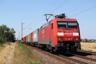 152 126-9 mit KLV-Zug bei Wiesental in Richtung Karlsruhe.