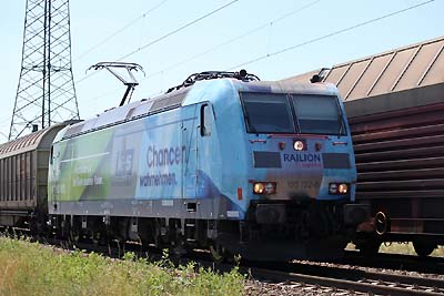 145 055-0 mit WINNER-KLV bei Wiesental in Richtung Mannheim.