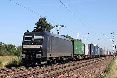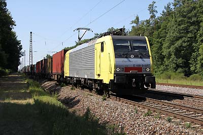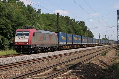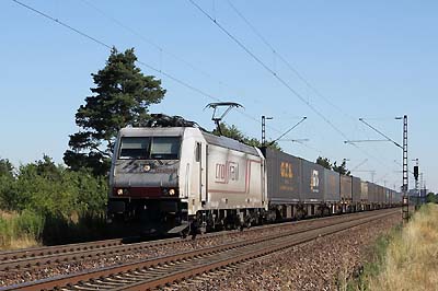 MTEG 189 800-6 mit einem Ganzzug aus CZ-Eas bei Oftersheim in Richtung Mannheim.