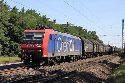 Re 482 028-8 ChemOil mit Gz bei Oftersheim in Richtung Karlsruhe.