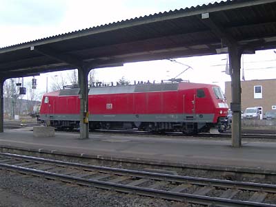 Kurz danach schleicht die vorher im ehem. BW Bebra abgestellte 120 146 Richtung Süden durch den Bahnhof. Leider waren wir nicht optimal aufgestellt.
