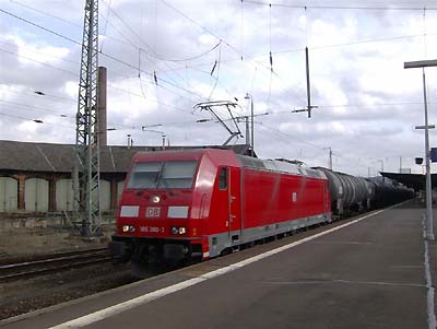 Nächster Zug: 185 380 mitKeWa vor den ehemaligen Lokhallen des ehemals so berühmten BW Bebra.