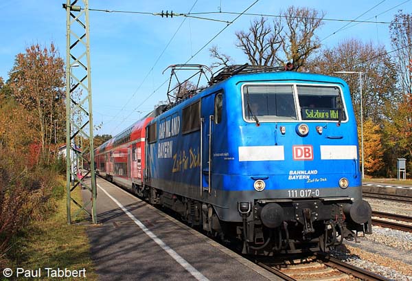 111 017 mit einem RE von München Hbf nach Salzburg Hbf am 28.10.11 in Aßling
