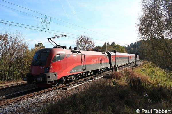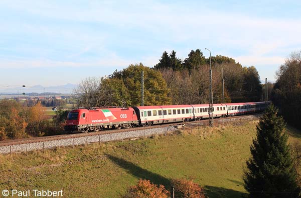1116 231 mit einem railjet nach Budapest am 28.10.11 in Aßling