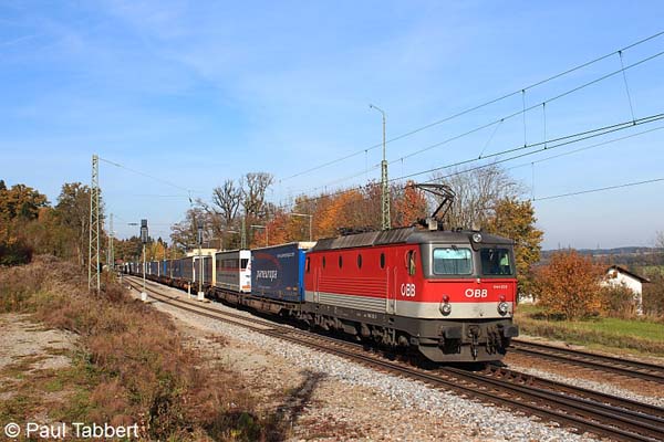 1144 202 mit einem KLV-Zug gen Österreich am 28.10.11 in Aßling