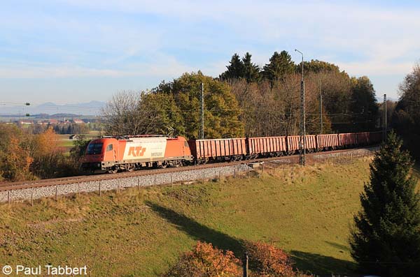 1144 261 + 255 mit einem KLV-Zug am 28.10.11 in Aßling