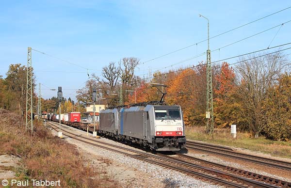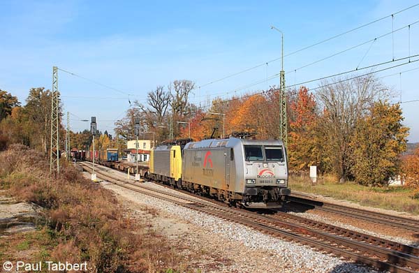 185 531 samt 189 926 und einem KLV-Zug im Schlepp am 28.10.11 in Aßling