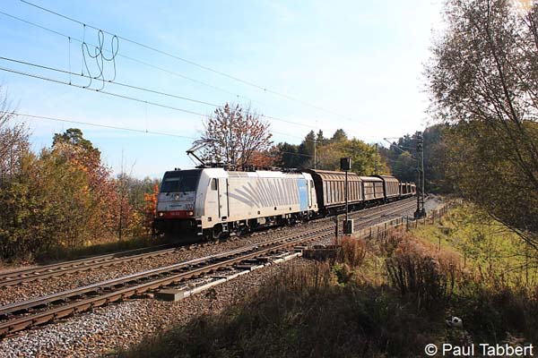 186 110 + 284 mit einem KLV-Zug von München Ost Rbf nach Verona am 28.10.11 in Aßling