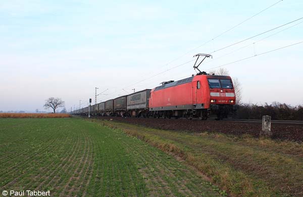 185 102 + 101 am 19.11.11 auf der Main-Neckar-Bahn bei Hähnlein-Alsbach