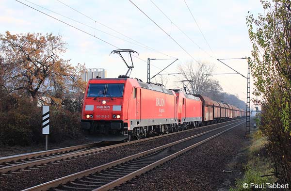185 242 + 344 am 19.11.11 auf der Main-Neckar-Bahn bei Hähnlein-Alsbach