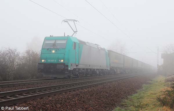 185 607 am 19.11.11 auf der Main-Neckar-Bahn bei Hähnlein-Alsbach