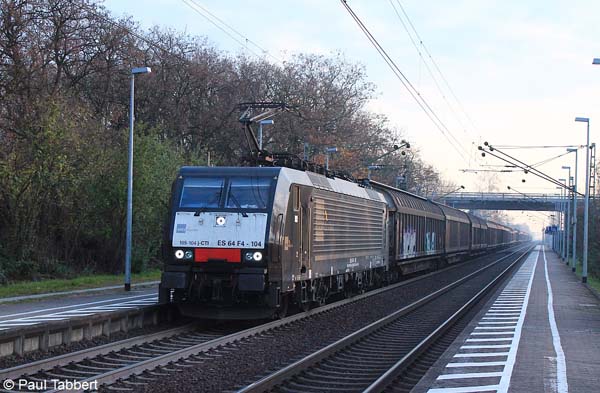 189 104 am 19.11.11 auf der Main-Neckar-Bahn am Haltepunkt Hähnlein-Alsbach