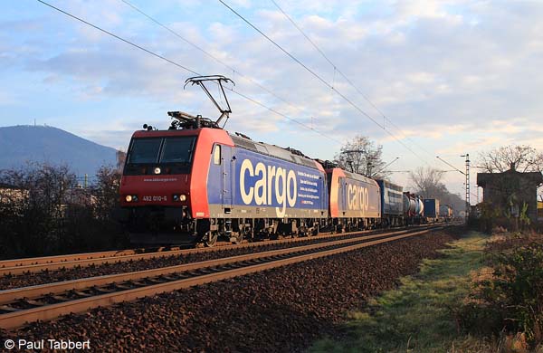 482 010 + 004 am 19.11.11 auf der Main-Neckar-Bahn bei Hähnlein-Alsbach