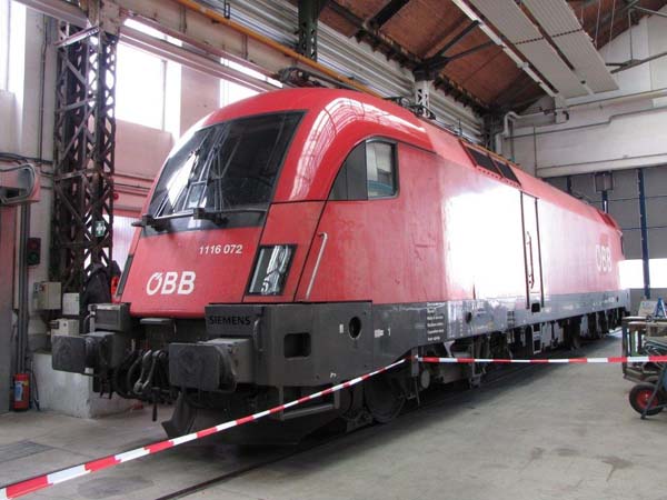 1116.072 (zukünftige Rumänien bzw. Bulgarienlok) am 23.6.2012 im TS-Werk Linz